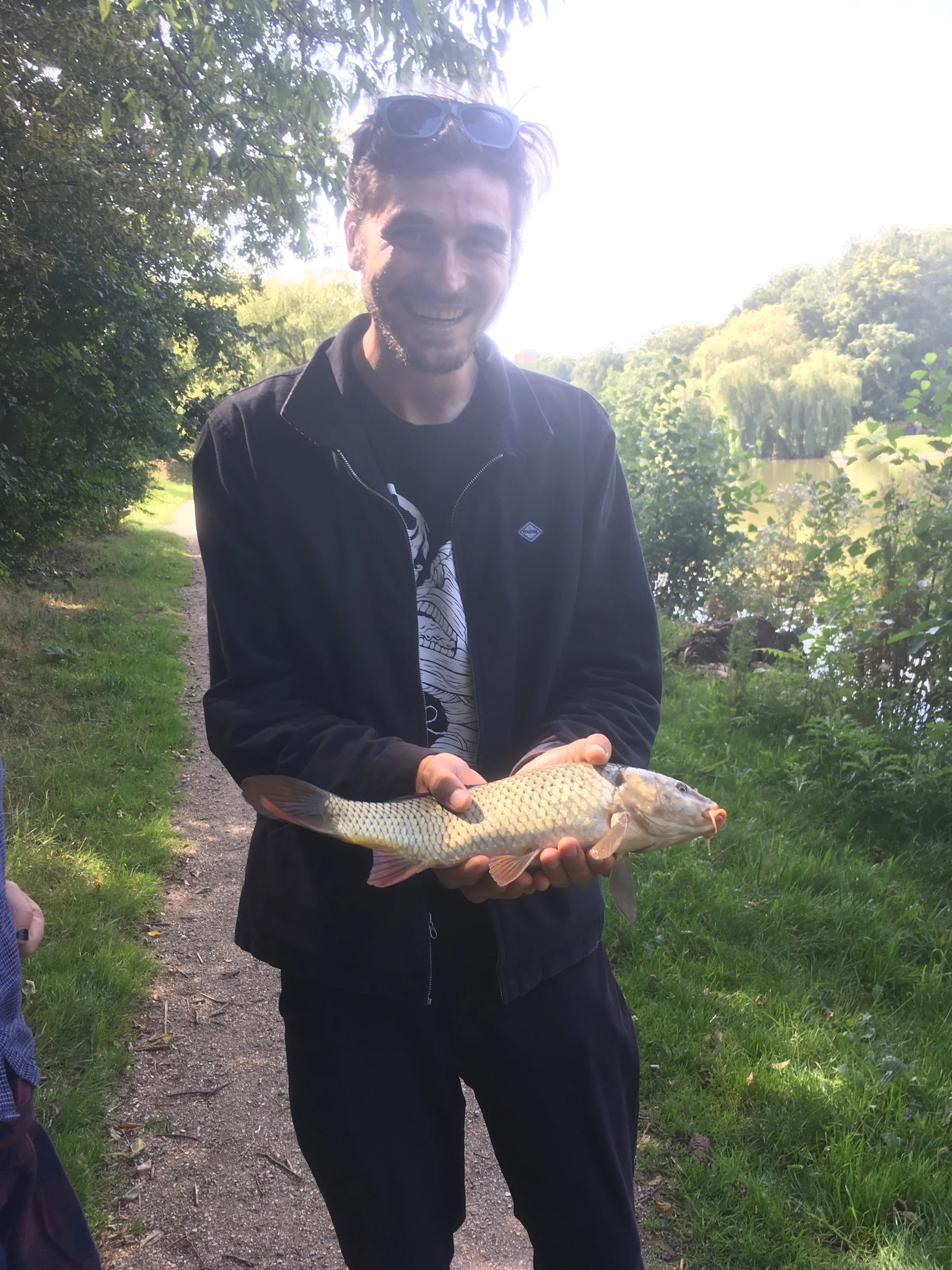 Taylor, after catching a fish with his bare hands in Den Haag.